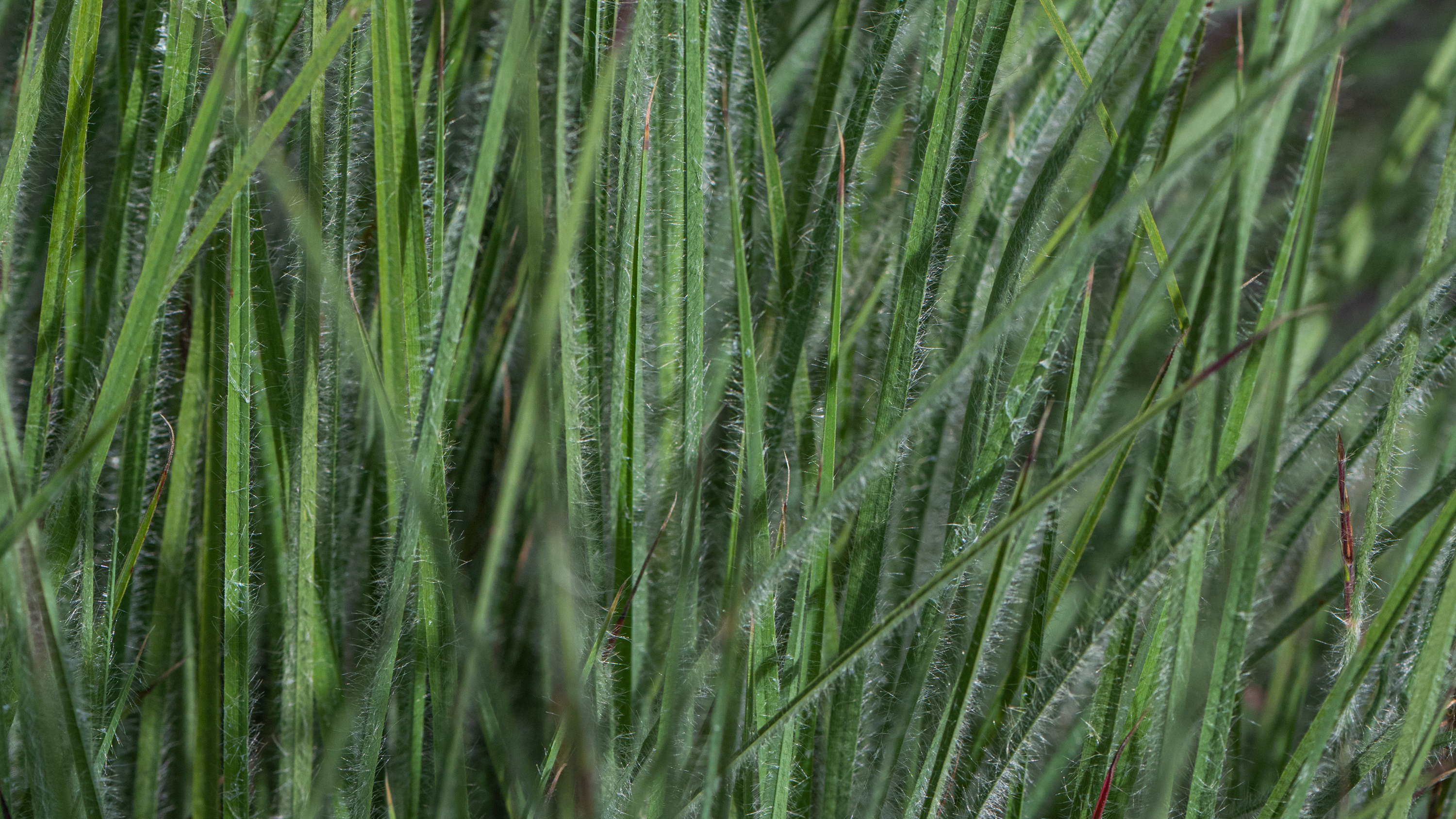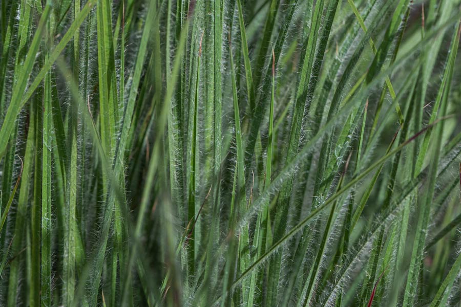 Beschreibung: Kurzes Präriegras mit wechselständigen Blättern in grundständigen Trieben. Triebe und Blätter sind dicht mit weichen, etwa 3 mm langen Haaren bedeckt. Verkehrt eiförmig. Haupttriebe wachsen von der Basis aus, keine Seitenverzweigung. Schönes bläuliches Laub, auffallend stärker behaart als bei der Art und anderen Sorten, nicht saugend, sehr markant. Verträgt viel Wärme.