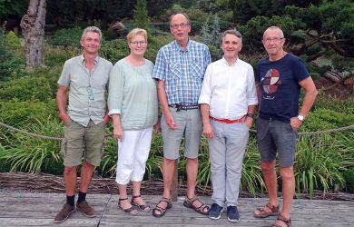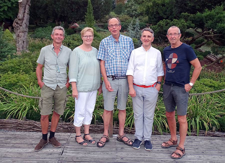 Den Vorstand der Internationalen Stauden-Union bilden nun (v. l.), Gerben Tjeerdsma (S), Beate Zillmer (D), der neue ISU-Präsident Aad Vollebregt (NL)Tomasz Michalik (P) als Vizepräsident und Michel Le Damany (F).