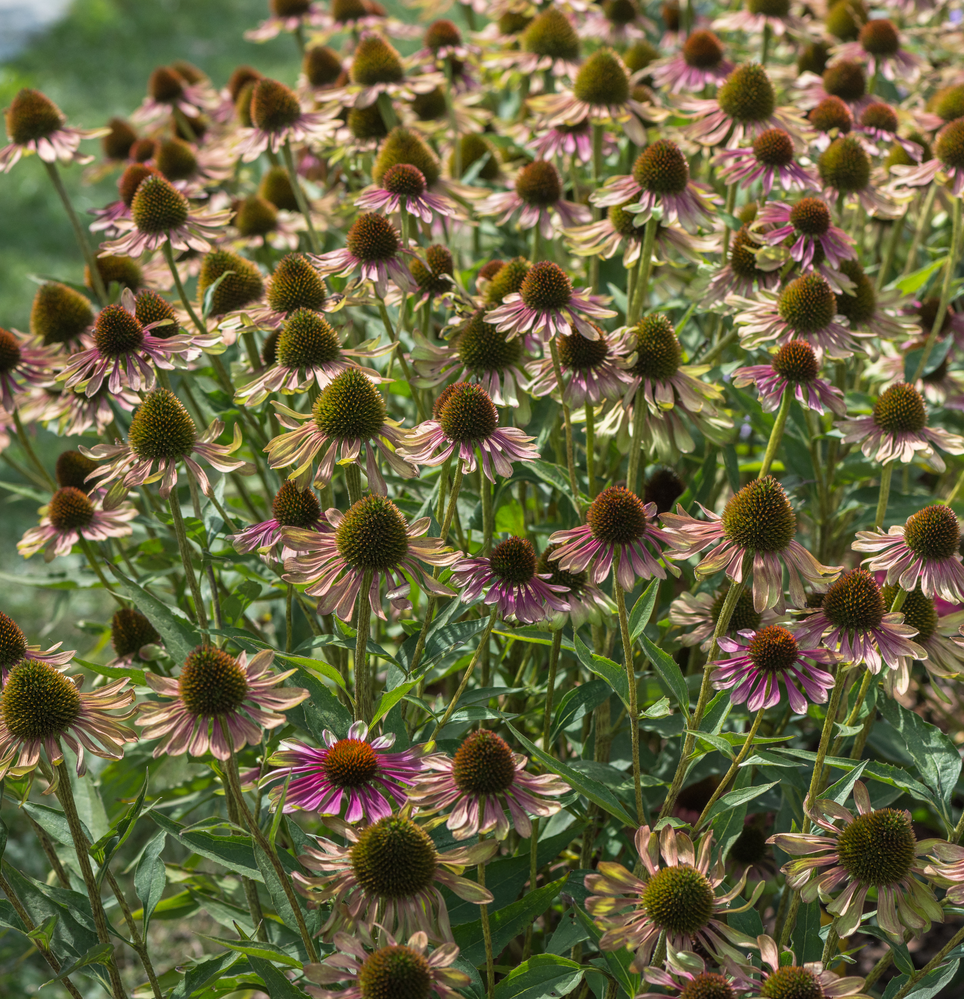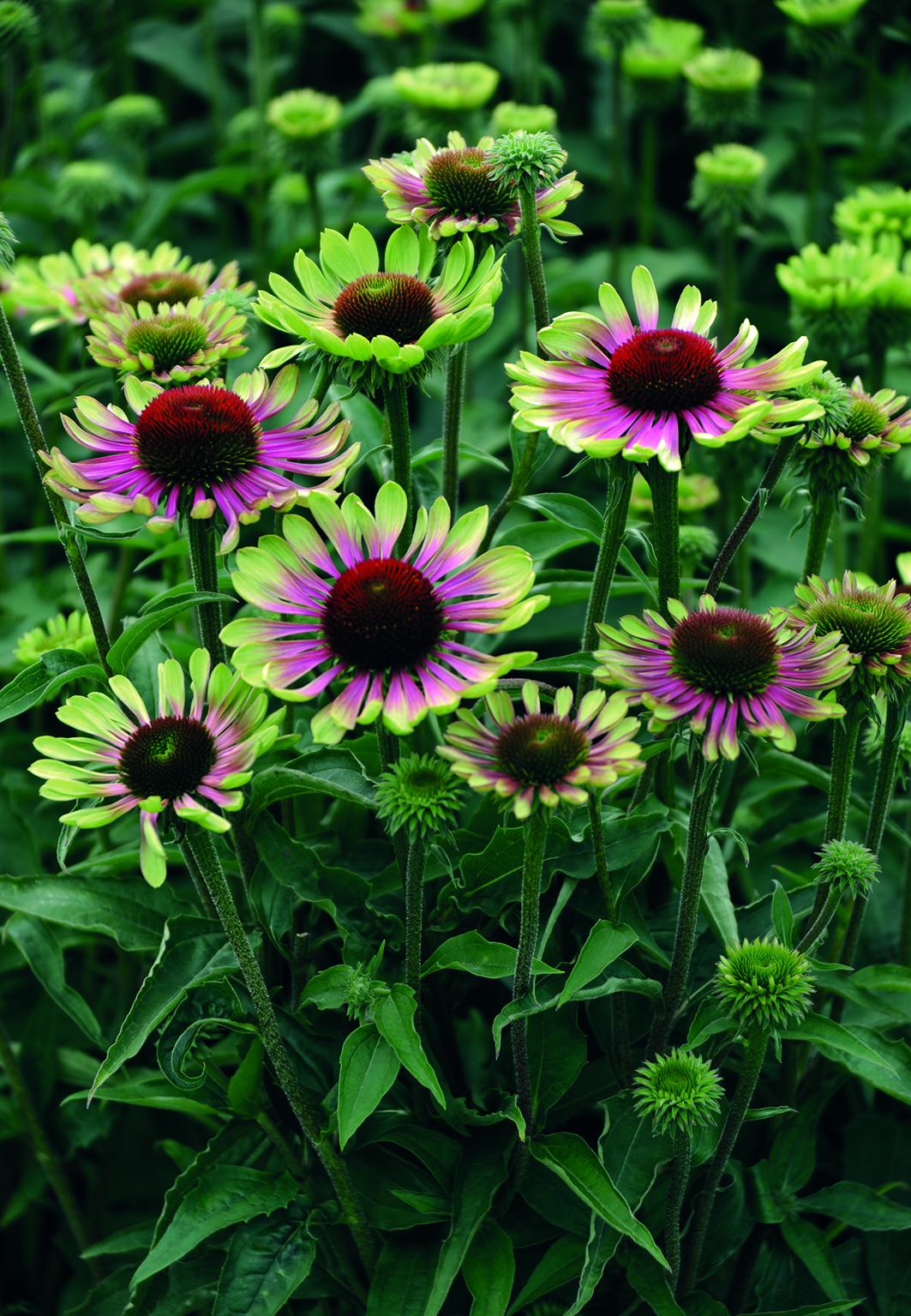The habit of that Echinacea purpurea is similar to `Magnus superior´, the flower similar to `Green Envy´. Upright, erected and sturdy growing it will be higher up to the second year. Flowering from July-September with inner petals in carmine-red/pink and outer petals in lemongreen brightened to greenish yellow. An average garden soil with average moisture in full sun is preferred. Easy to sow, honey-bee food plant / suitable for cut.